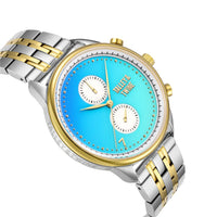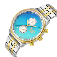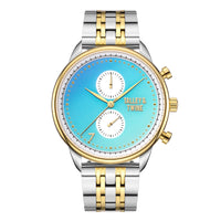 Crafted with precision, the Mykonos features a robust 41mm case forged from two-tone stainless steel in radiant gold and silver. Its scratch-resistant sapphire crystal offers enduring clarity, while the dependable Miyota movement ensures flawless timekeeping. The matching two-tone bracelet blends strength and style, delivering a refined wrist presence.