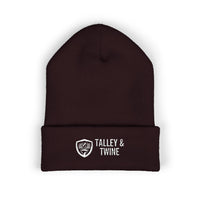 Talley & Twine Embroidered Cuffed Beanie — Classic Black Knit Hat